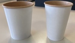 An environment-friendly alternative to conventional paper cups with a special plastic-free dispersion barrier instead of the traditional PE / PLA coating. The cups are similar to what users are accustomed to, and are stored and used similarly to conventional disposable paper cups.